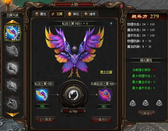 羽翼还可以像普通装备一样进行强化,获得更强悍的属性加成: