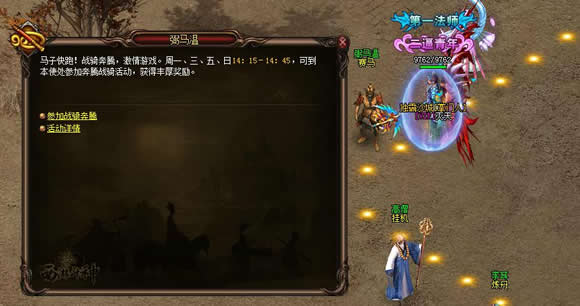 赛马活动分为两张地图,活动开启后,进入的玩家将传送至熔岩山谷的起点处,并有3分钟的等待时间,等待时间结束后,起点处的栅栏将自动消失,玩家可向终点冲刺。经过凌霄宫赛道可到达活动地图终点。